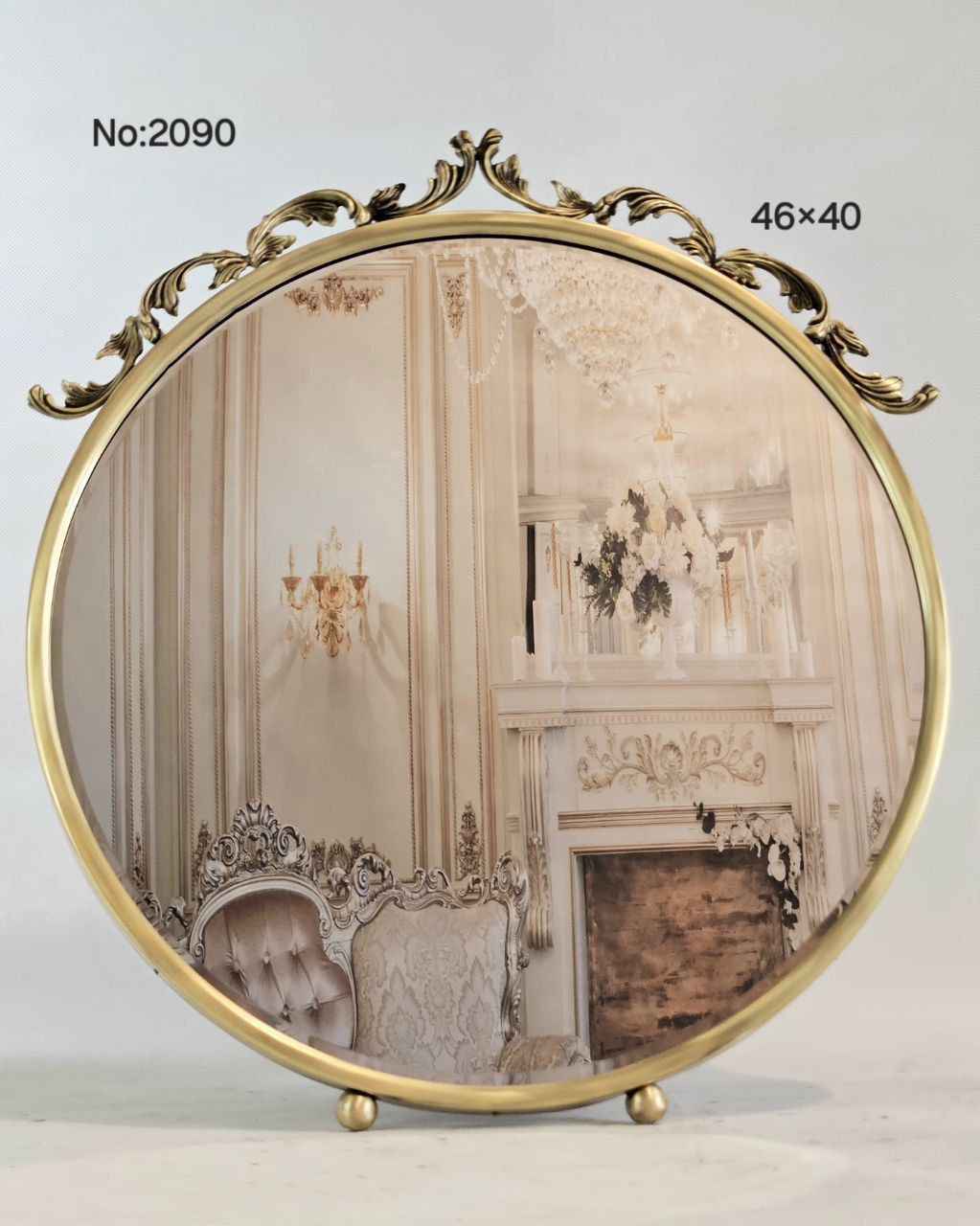 کد 774sh آینه برنز گرد ۴۰سانت تاجدار. ابعاد ارتفاع ۴۶ و عرض ۴۶ سانت.