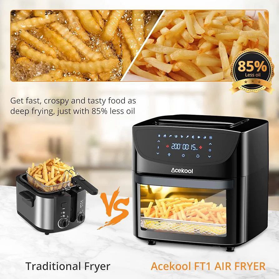 دیگه از سرخکردنی های چرب و ناسالم خداحافظی کنید! با سرخکن هوای داغ Acekool XXL، تمام غذاهای مورد علاقهتون رو بدون هیچگونه روغن اضافه تهیه کنید، آنهم در کمترین زمان ممکن!