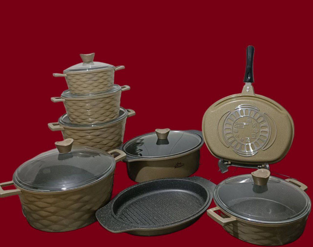 سرویسهای قابلمه چدن گرانيت ۱۵ پارچه با کیفیت عالی برند ریزوتی