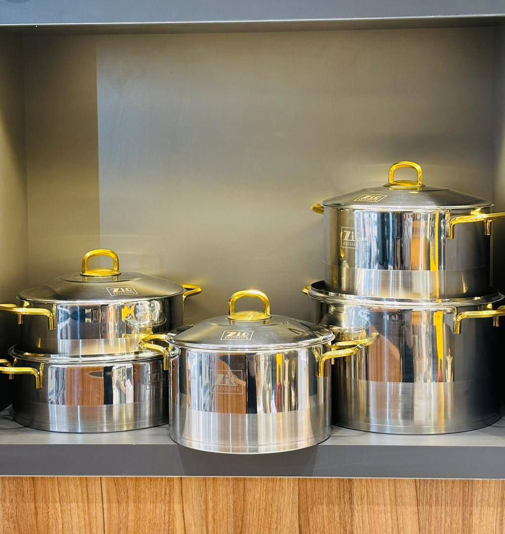 سرویس قابلمه استیل زیو دسته طلایی
