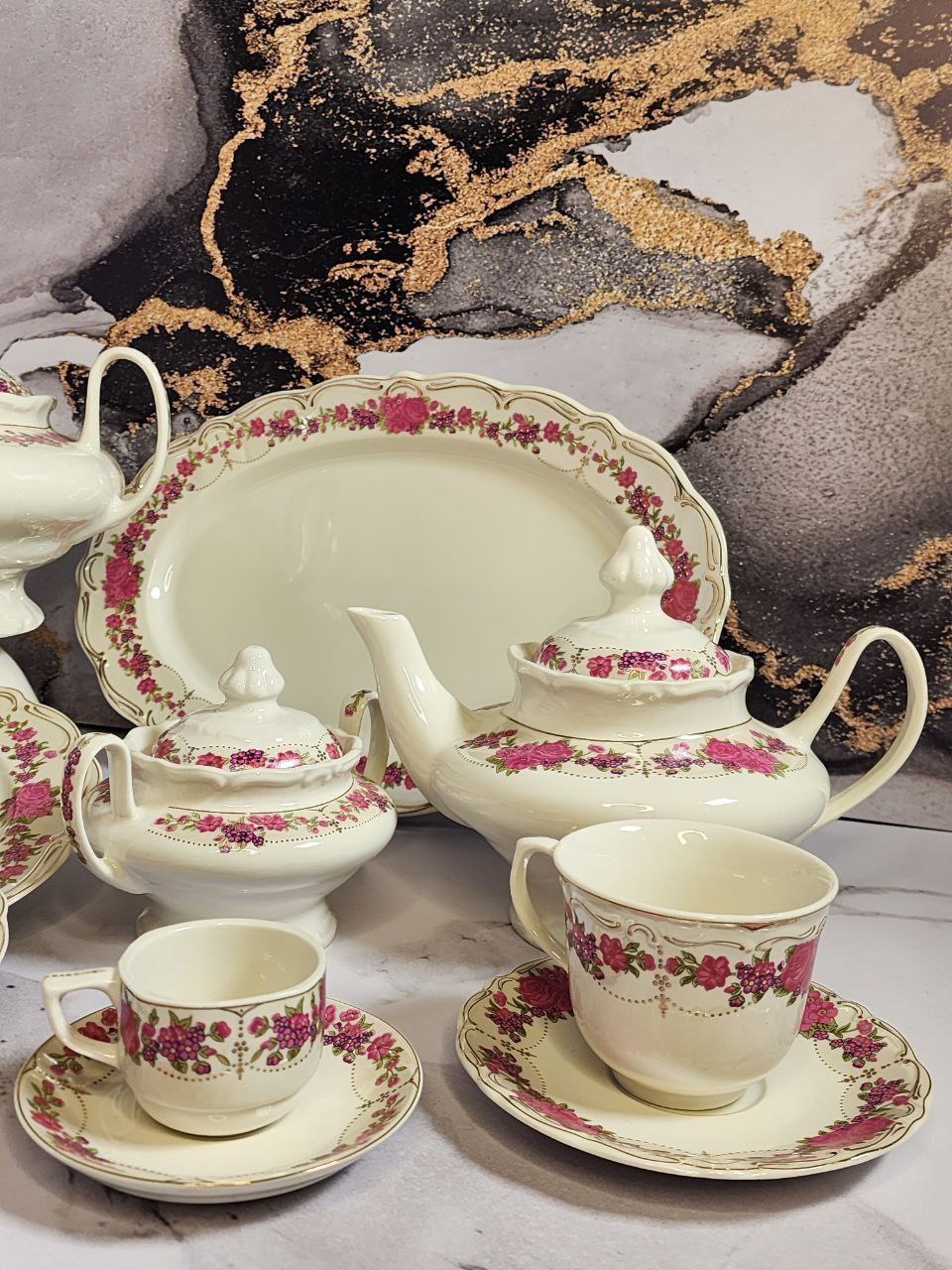 سرویس چینی۹۸پارچه نیو بن چینا برند ایزابل بسیار با کیفیت همراه با کاسه آبگوشت طرح پاتریشیا