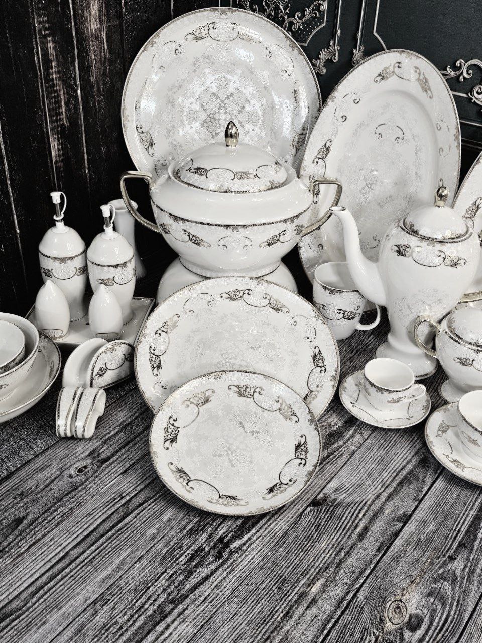 سرویس ۱۲نفره چینی پردیس برند صادراتی ویلیام طراحی جدید دسته طلا طرح ۴۰۵۸ پلاتین