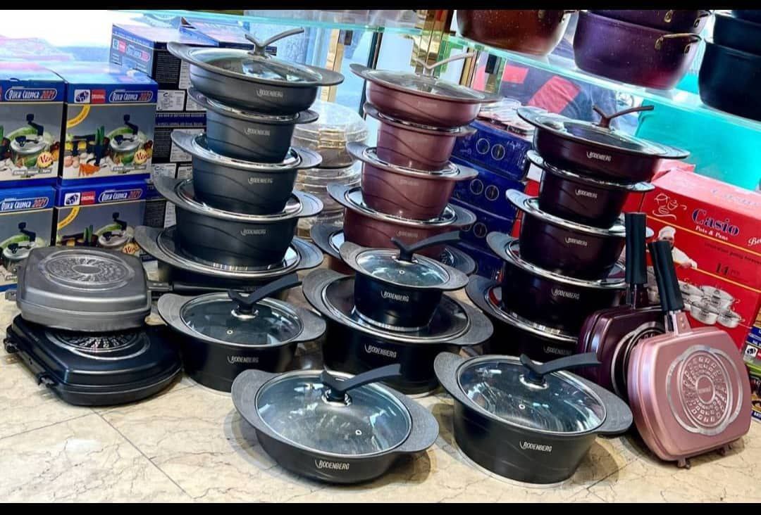 سرویس ۱۲پارچه چدن رودنبرگ در سایز های ۲۶.۱۸.۲۲.۲۶.۳۰ و تابه رژیمی ۳۲ در رنگ های متنوع و زیبا