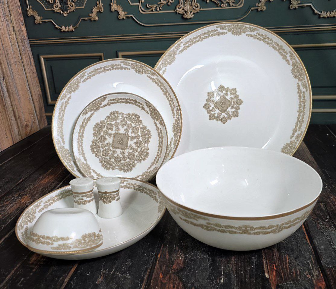 سرویس ۲۸ پارچه ۶نفره غداخوری طرح گرد النا طلایی درجه یک برند بست اپال