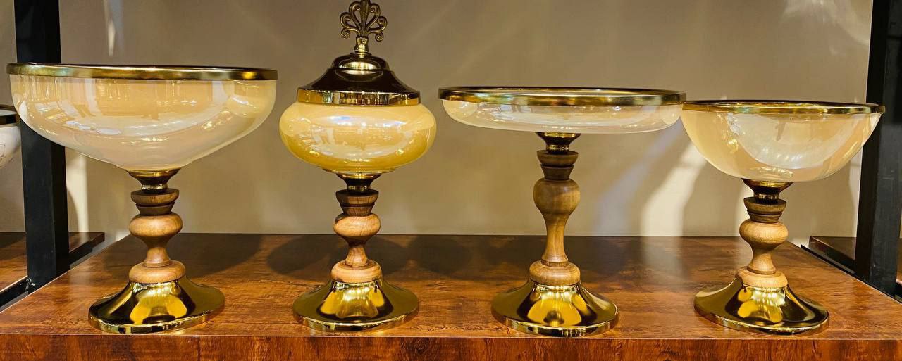 سرویس ۴پارچه عسلی پایه چوب گردو
