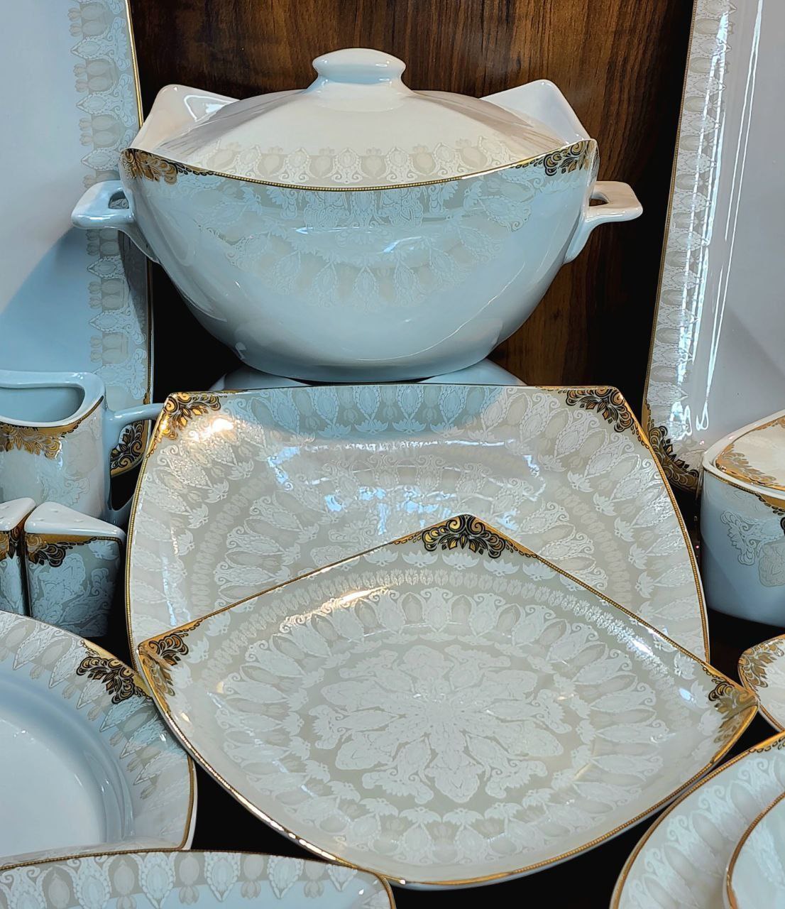 سرویس 105 پارچه پلوخوری و پیش دستی کف گل چینی پردیس قالب پاریس نام طرح: منچستر طلایی کد طرح: 2041