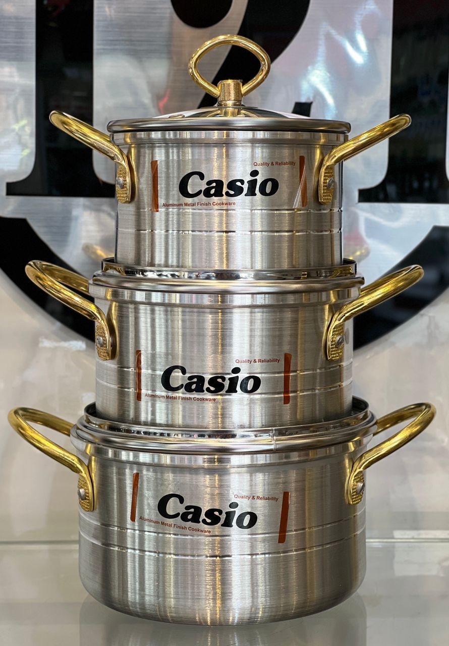 سه قابلمه طرح چدن کاسیو کوچک با کیفیت عالی با بسته بندی مقام دسته طلایی