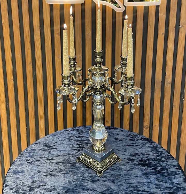 شمعدان ۵ شعله تنه کریستال وسنگ