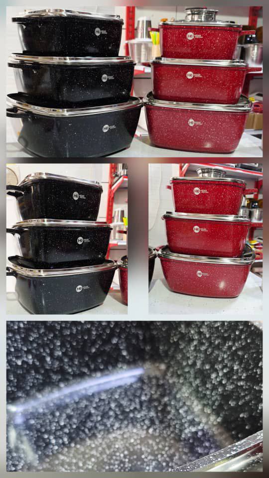 قابلمه 6پارچ در دو رنگ مشکی و قرمز گرانيت