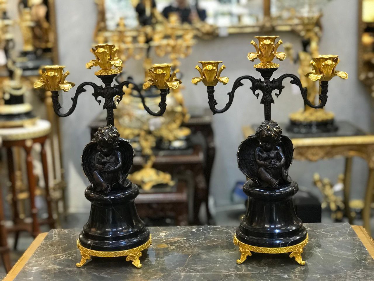 مجسمه شمعدان سه شاخه فرشته بالداربرنز
