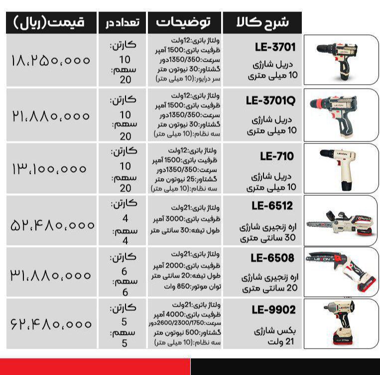 لیست قیمت اجناس لکسون
