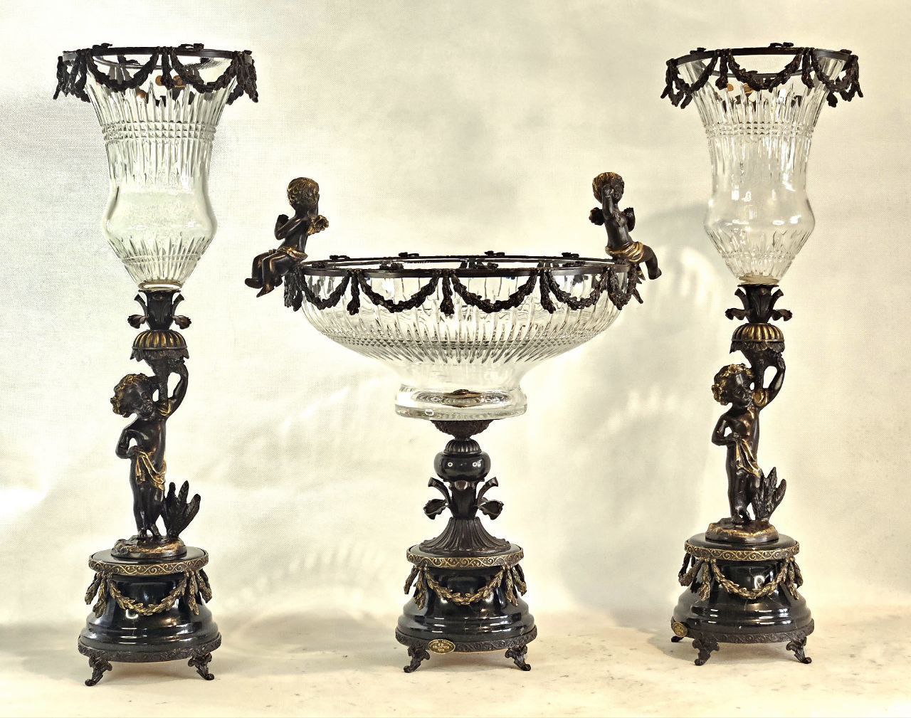 گلدان متوسط مجسمه ایستاده بامیوه خوری برنز دوفرشته